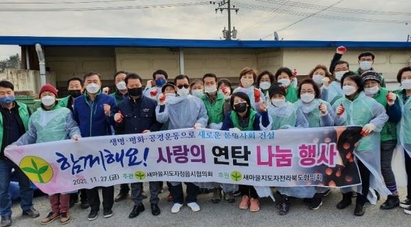 정읍시새마을회(회장 임환규) 새마을지도자정읍시협의회(회장 김인덕) 주관, 새마을지도자전라북도협의회가 후원한 ‘사랑의 연탄 나눔행사’가 지난27일 정읍시 정우면에서 개최됐다.