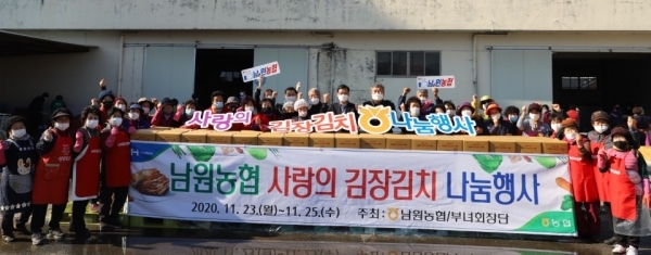 남원농협(조합장 박기열) 임직원 및 부녀회장단은 지난 23일부터 25일까지 남원농협 본점에서 ‘이웃과 함께하는 사랑의 김장김치 담그기 행사’를 실시했다.