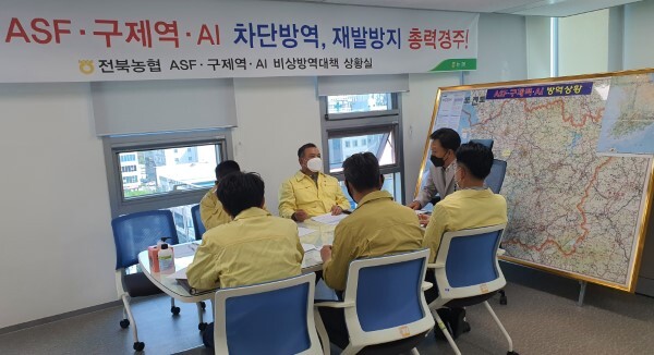 전북농협은 지역본부와 시군지부, 축협을 포함한 관련 사업장의 AI 방역대책 상황실을 24시간 근무체계로 전환해 가동 중이다.