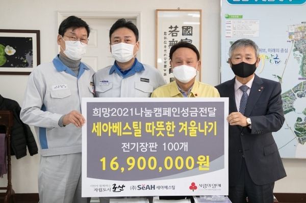 이번 기탁식 재원은 (주)세아베스틸 전 임직원의 급여 끝전 및 희망 나눔 모금액으로 마련됐다.