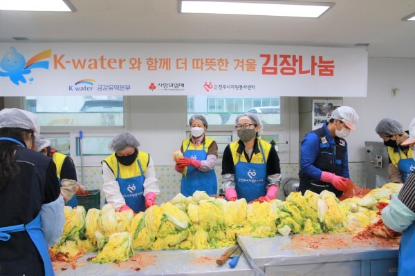 K-water 금강유역본부(본부장 민경진)은 1일 전주시자원봉사센터와 함께 사랑의 김장 봉사활동 행사를 펼쳤다.
