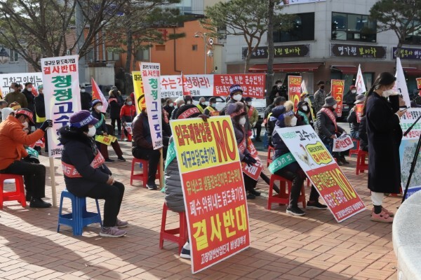 고창일반산업단지 비상대책위원회는 지난 4일 군청 앞에서 동우팜투테이블의 고창일반산업단지 입주를 반대하는 집회를 열고 “특혜가 분명한 입주제한업종 변경을 중지하고, 투자협약 파기를 통해 주민들의 삶과 일상을 지켜줄 것”을 강력히 요구했다.