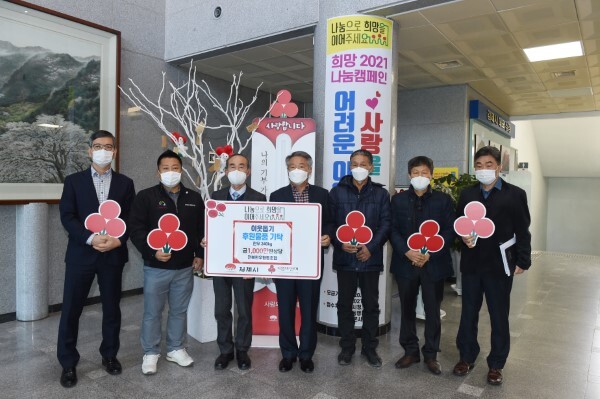 전북한우협동조합이 9일‘희망 2021나눔캠페인’이웃사랑 나눔 실천을 위해 우리축산물 불고기용 한우 340㎏(1000만원 상당)을 김제시에 기탁했다.