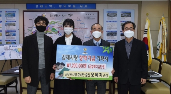 오 순경은 이날 기탁식에서“노량진 등 타지로 떠날 필요 없이 집 근처에서 학습할 수 있어 시간과 경제적 비용을 크게 아낄 수 있었다”며, “꿈을 위해 노력하는 학생들을 위한 인프라를 구축해주신 김제시에 감사드린다”고 말했다.