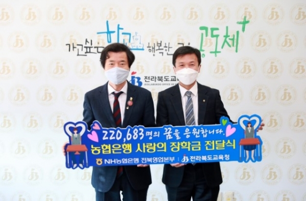 농협은행 전북본부는 지역인재육성을 위해 지난 2012년부터 해마다 전북도교육청에 장학금을 기탁하고 있다.