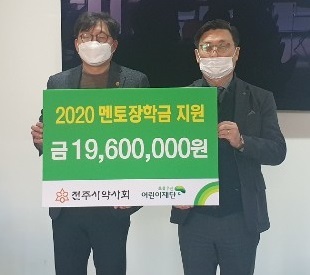 전주시약사회(회장 백경한)는 10일 전라북도약사회관에서 초록우산어린이재단 전북지역본부에 멘토장학금 1960만원을 전달했다.