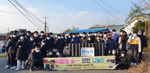 군산 산북중(교장 남궁세창)은 지난 12일 학생들과 함께 ‘사랑의 슛~연탄 나눔’행사를 진행해 코로나19로 얼어붙은 지역사회를 훈훈하게 했다.