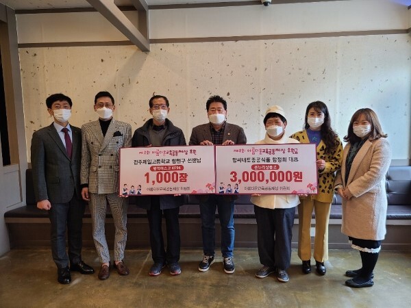 함정희 함씨네토종콩식품 대표는 온누리 상품권 300만 원을 기부했고, 소상호 (사)대한사랑 전주지부장은 현금 30만 원을 후원했다. 제1회 아름다운 교육공동체상을 수상한 함현구 전주제일고 교사도 방역마스크 KF94 1000장을 기부했다.