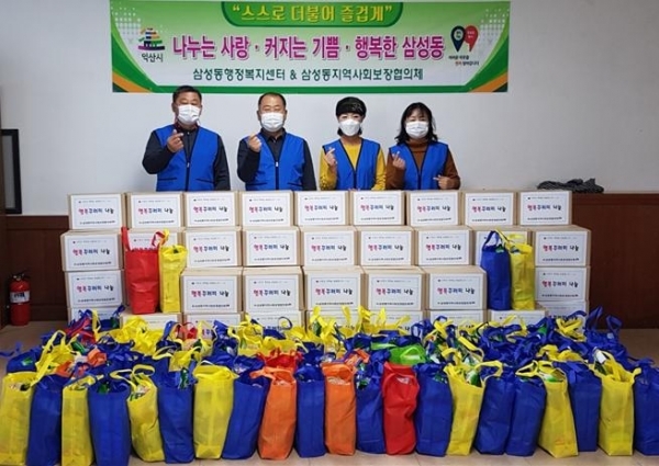 또한, 삼성동 지역사회보장협의체(위원장 이영순)도 이날 저소득층 100가구에게 식료품과 생필품 등으로 꾸려진 행복꾸러미를 전달했고, 송학동 새마을부녀회(회장 오희선)는 고추장, 장국소스, 소시지, 김 등 풍성한 식료품으로 구성된 사랑나눔 꾸러미를 독거노인 등 저소득 취약계층 20가구에게 전달했다.