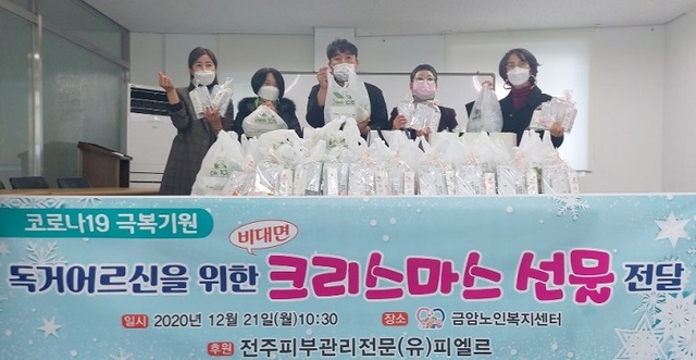 전주피부관리전문 (유)피엘르(대표 김선영)는 21일 코로나19로 인해 각종 대면활동이 제한되면서 어려움을 겪는 독거어르신을 위한 크리스마스 선물을 전달했다.