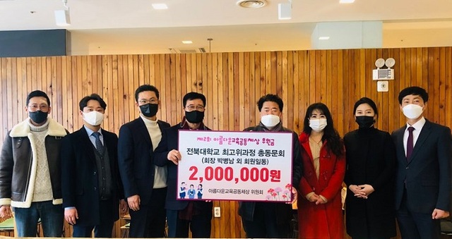전북대학교 최고위과정 총동문회(회장 박병남)이 아름다운교육공동체상 위원회에 후원금 200만 원을 기부했다.