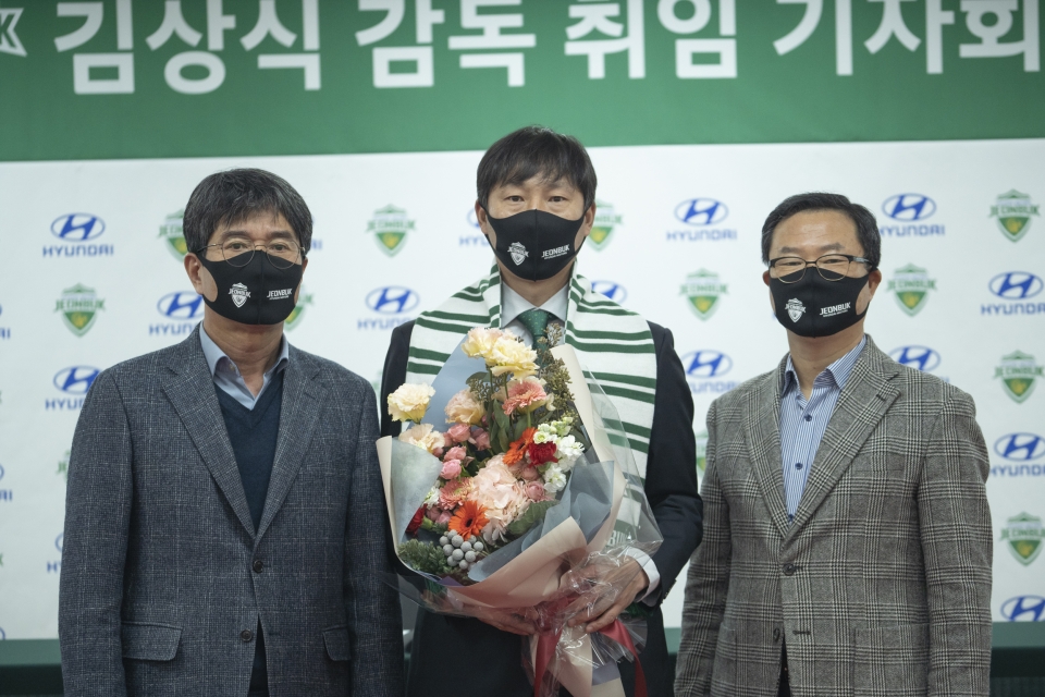 김상식 전북현대모터스 신임 감독의 취임 기자회견이 23일 오전 전주월드컵경기장에서 온라인으로 진행됐다. 이 자리에서 김상식 신임 감독은 2021 시즌 목표로 "K리그와 아시아챔피언스리그 더블"이며 "선수 시절부터 재밌는 축구, 공격적인 축구, 팬들이 좋아하는 축구를 하고 싶었다. 나의 축구는 흥, 멋, 화공이다. 흥겹고 멋있는 축구로 팬들을 즐겁게 하고, 화끈한 공격을 선보이겠다"고 전했다.