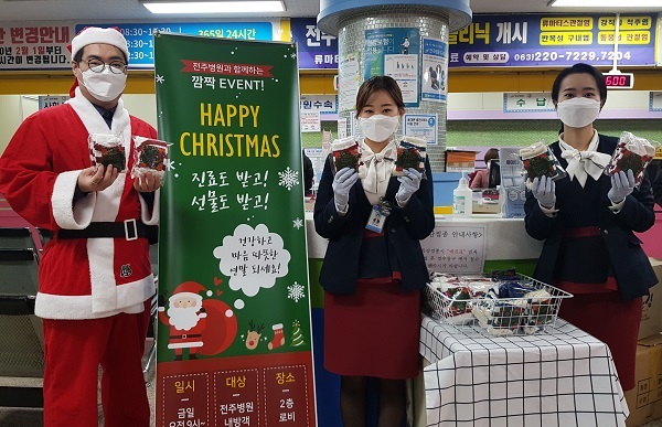 영경의료재단(이사장 최정웅) 전주병원이 코로나19로 침체된 사회 분위기를 환기하고자 환자와 방문객 등을 대상으로 크리스마스 행사를 진행했다고 밝혔다.