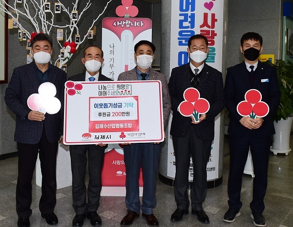 김제수산업협동조합(이하 김제수협)은 29일 이웃돕기 성금 200만 원을 김제시에 기탁하고‘희망2021나눔캠페인’에 동참 했다.