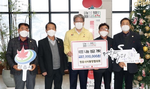 정읍시 이통장협의회(회장 강연천)는 30일 정읍시청을 방문해 희망 나눔 성금 200만원을 전달했다.