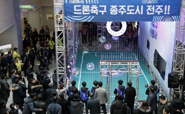전주시는 드론, 탄소소재, ICT기술을 융복합한 드론축구를 세계 최초로 개발해 보급하고 있다. 전주가 드론축구 종주도시로 불리는 이유다.