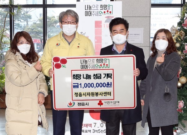 정읍시자원봉사센터(이사장 은성수)는 4일 직원들이 십시일반 모아 마련한 ‘희망 2021 나눔 성금’ 100만원을 전달했다.