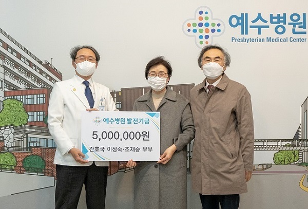 이성숙·조재승 부부는 “지역사회를 위해 봉사하는 병원에 작은 보탬이 되고자 후원하게 됐다”며 주님께서 더 크게 쓰시는 예수병원이 되길 바라며 예수병원의 더 큰 발전을 기원한다”고 전했다.