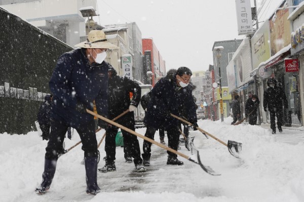 7일 정읍에 최고 20cm의 폭설이 내리자 시내 곳곳에서 가게앞 눈을 치우는 상인들이 보였으며 주택가 일부 주민들은 동주민센터에서 염화칼슘을 신청하거나 직접 수령하여 골목길 제설작업을 펼치기도 했다.