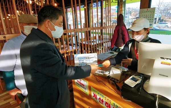 군산시 소룡동(동장 권은경)이 사회적 거리두기로 집합금지 및 영업제한을 받고 있는 관내 소상공인 지원을 위해 연초 ‘착한 선(先)결제 캠페인’을 진행해 눈길을 끌고 있다.