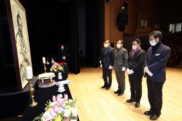 고창동학농민혁명기념사업회가 지난 10일 오후 고창 동리국악당에서 ‘전봉준 장군 탄생 제165주년 기념행사’를 열었다. 유기상 군수와 최인규 군의장, 진윤식 고창동학농민혁명기념사업회 이사장을 비롯한 관계자들이 참석한 가운데 축소 진행됐다.