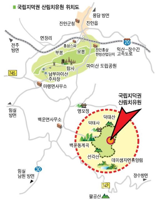 진안군 백운면에 617ha 규모의 국립지덕권산림치유원 조성사업이 기본설계 기술제안 방식으로 추진된다.