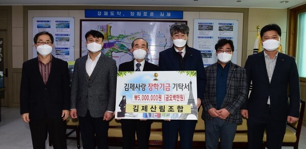 김제산림조합(조합장 함길권)은 13일 김제사랑장학재단(이사장 박준배)을 방문해 청소년들을 위한 장학사업에 써 달라며 500만원의 장학금을 기탁했다.