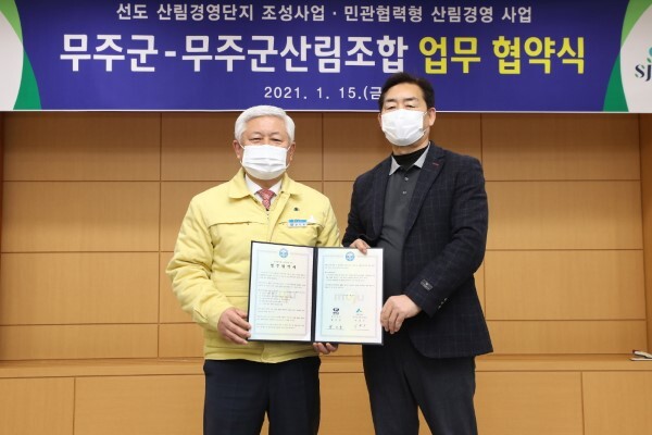 무주군이 무주군산림조합(조합장 박철수)과 2021 민·관협력형 산림경영사업과 선도 산림경영단지 조성사업을 위한 업무협약을 맺었다.
