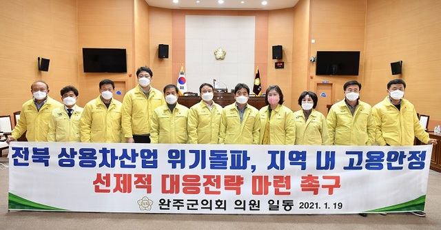 완주군의회(의장 김재천)는 현대자동차 전주공장의 2020년도 버스·트럭 생산량이 역대 최저치를 이르고, 버스·트럭 생산라인 가동률이 40%대로 급락하는 등 최근 상황과 관련, “전북 상용차산업 위기 돌파와 지역 내 고용안정을 위한 민·관·정 협력체계 구축 및 선제적 대응 전략 마련해야 한다”고 19일 지역 사회에 선제적 대응을 촉구했다.