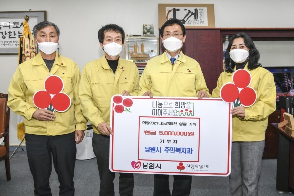 남원시 주민복지과는 지난 19일 어려운 이웃을 위한 나눔 사업에 앞장서고자‘희망2021 나눔캠페인’에 성금 500만원을 쾌척했다.
