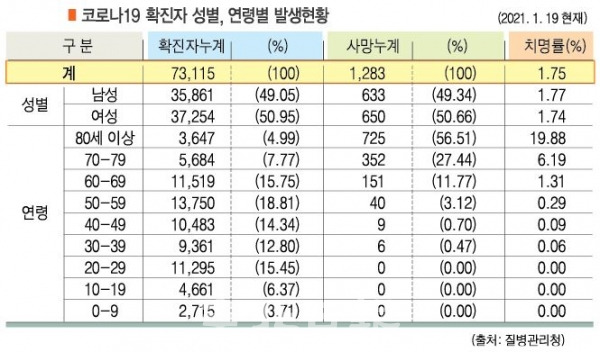 2019년 12월 중국 우한에서 코로나19가 첫 발생한 이후 세계적으로 1억 명 가까운 확진자와 200만 명 가까운 사망자가 발생했다. 우리나라는 19일 현재 7만3115명의 확진자와 1283명의 사망자가 발생했다. 특히 노인들은 코로나19 감염에 취약해 연령별 사망률은 50대 이하가 4.29%인데 비해 60대 이상은 95.71%에 이르고 있다. 지역별 확진자는 수도권이 71.4%를 차지하고 전북은 확진자 995명, 사망자 34명이다.