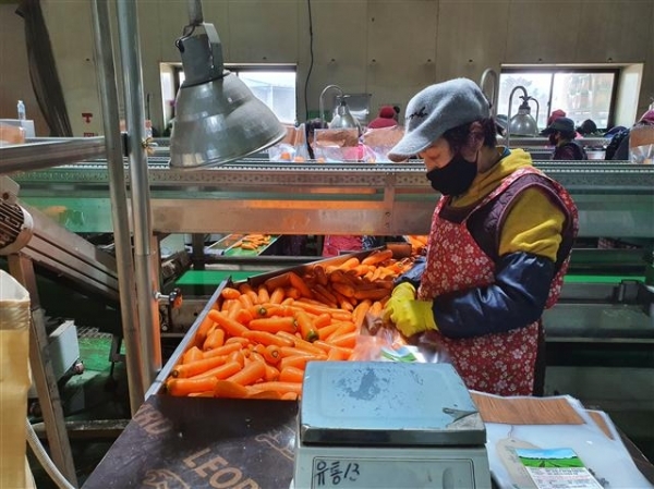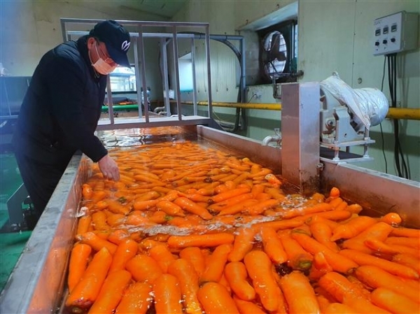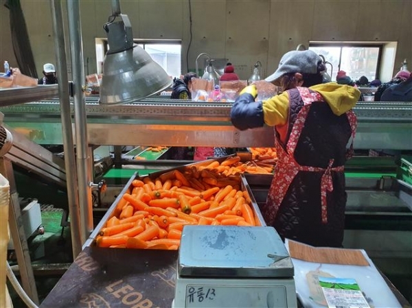 제철을 맞은 겨울 당근을 수확하는 농민들도 쉴 틈이 없다.