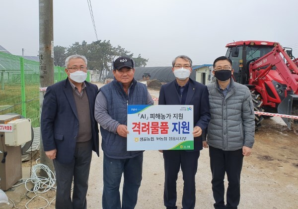 NH농협 정읍시지부(지부장 이용균)와 샘골농협(조합장 허수종)은 지난 22일 고병원성 AI 발생으로 피해를 입은 농가에 격려금과 위문품을 지원했다.