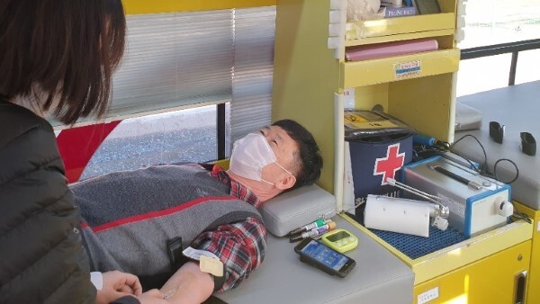 행복센터 주차장에 주차된 대한적십자사 전북혈액원 헌혈버스에서 실시된 헌혈에는 직원뿐만 아니라 지역주민까지 헌혈에 나섰다.