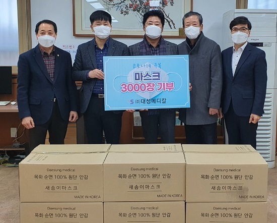 ㈜대성메디칼 양용호 대표는 “코로나19로 어려움을 겪고 있는 지역사회에 힘을 보태고 싶었다. 마스크 부족으로 어려움 겪고 있는 지역주민들의 일상생활에 조금이나마 도움이 됐으면 좋겠다”고 말했다.