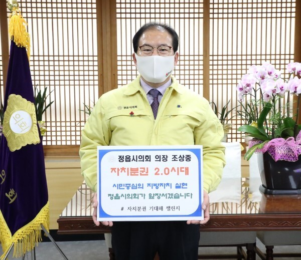 정읍시의회 조상중 의장이 자치분권 2.0시대 개막을 응원하기 위해 ‘자치분권 기대해’ 챌린지에 동참했다.
