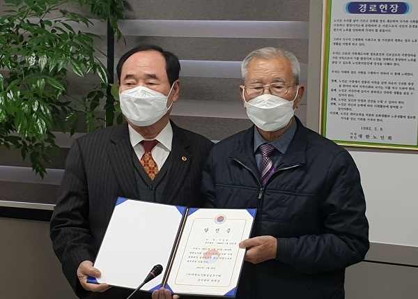 대한노인회임실군지회 이강년(81) 지회장이 제 16대 지회장 선거에서 무투표로 당선, 지난달 28일 취임식을 가졌다.
