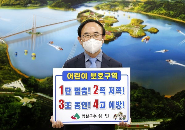 심민 임실군수가 지난달 28일 어린이 보호구역 내 교통안전 문화정착을 위해 ‘어린이 교통안전 릴레이 챌린지’에 동참했다.
