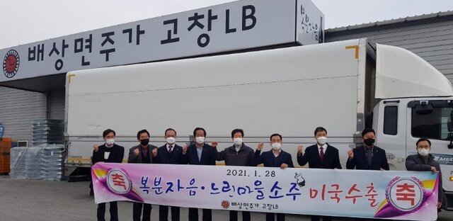고창군 소재 복분자주 생산업체인 ‘배상면주가고창LB(대표 안재식)’의 대표상품인 ‘복분자음’이 지난 28일 미국 수출길에 올랐다.
