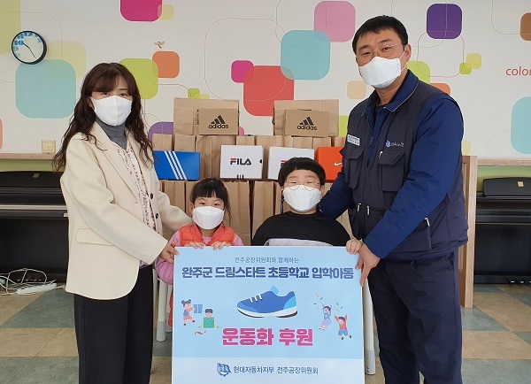 완주군드림스타트는 취약계층 아동에게 초등학교 입학을 축하해주기 위한 운동화 지원을 지난해부터 현대차 금속노조의 후원으로 진행하고 있다.