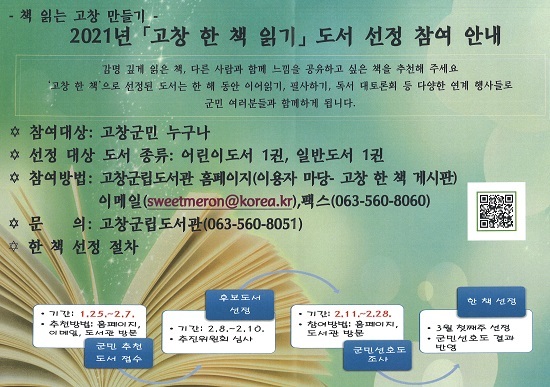 고창군, ‘2021년 고창 한 책’ 추천해주세요