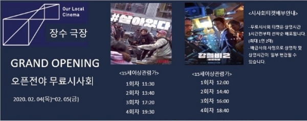 장수 한누리영화관 개관 기념 무료 시사회
