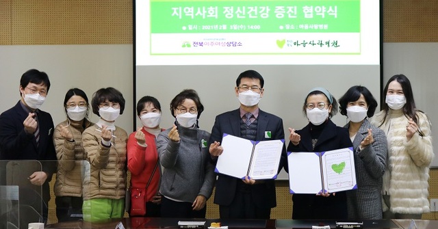 전라북도마음사랑병원은(이사장 김성의) 지난 3일 전북이주여성상담소(소장 김동준) 와 업무협약을 체결, 도내 이주여성의 정신건강상담 및 치료지원 서비스, 지역 내 취약대상자 의뢰와 발굴등 정신건강을 위해 함께 노력하기로 했다.
