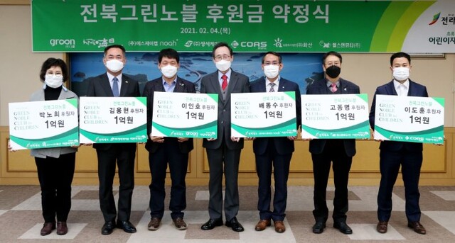 이인호 ㈜그룬 대표 등 신규 그린노블 약정자 7인은 각자 매년 2000만 원씩 5년간 총 1억 원을 아이들의 꿈을 응원하기 위해 지원할 것을 약속했다.