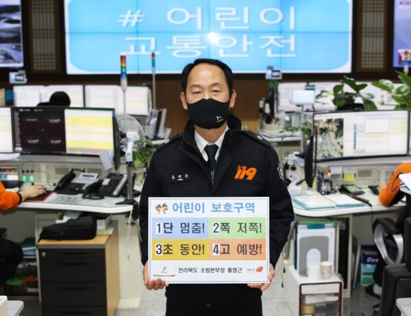홍영근 전북소방본부장이 4일 ‘어린이 교통안전 릴레이 챌린지’에 동참하고 각계각층의 관심을 당부했다.