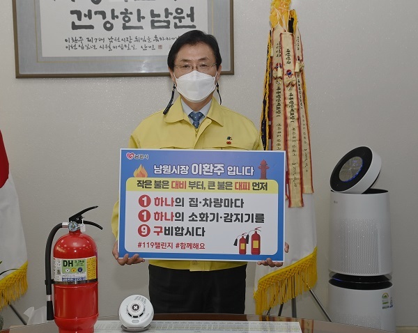 이환주 남원시장이 지난 5일 겨울철 화재예방을 위한 ‘119 릴레이 챌린지’에 동참했다.