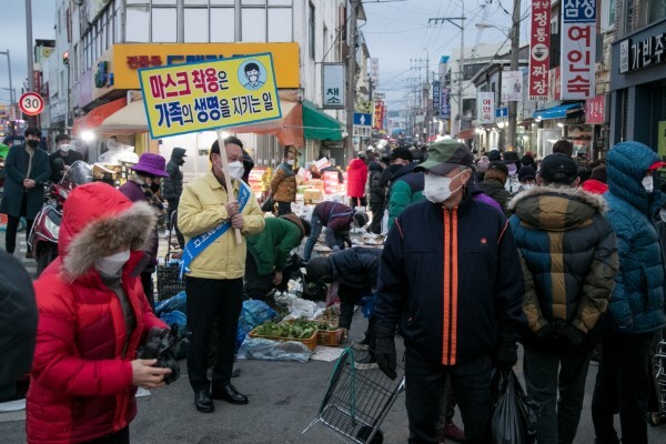 이에 강임준 시장을 비롯한 시청 직원들은 피켓과 현수막을 이용해 상인들과 물건을 사러 나온 시민들을 대상으로 마스크 착용 및 설 명절 타 지역 방문을 자제하는 캠페인을 벌였다.