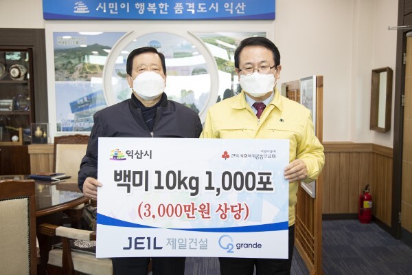 전북지역 대표 향토기업 ㈜제일건설(대표 윤여웅)이 설 명절을 앞둔 8일 어려운 이웃에게 전달해 달라며 쌀 10kg 1000포대(시가 3000만원 상당)를 익산시에 기탁했다.