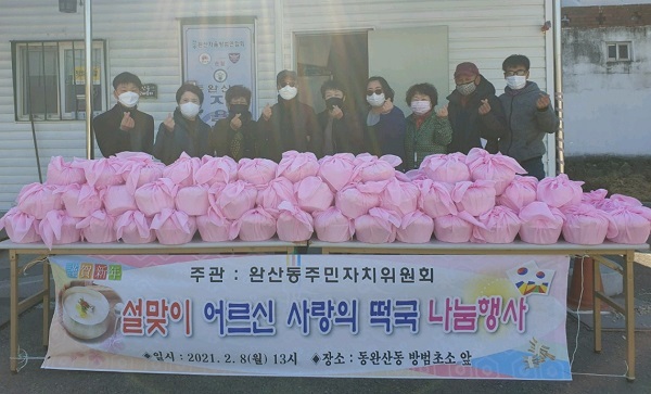 전주시 완산동 주민자치위원회가 8일 민족 고유의 명절인 설을 맞아 관내 어려운 이웃 70가구에 사랑의 떡국 나눔 행사를 가졌다.