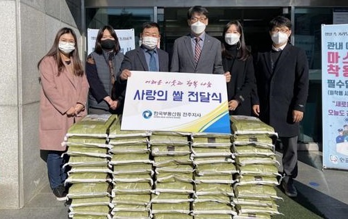 한국부동산원 전주지사(지사장 강대일)는 9일 전주 안골노인복지관을 방문, ‘사랑의 쌀 나눔행사’를 가졌다.